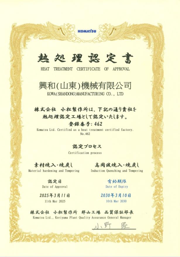 本公司成立于2008年在山東省濟寧市,是日本株式會社興和工業所在海外投資成立的一家全日資企業,總投資額42億日元,占地面積27,325㎡,引進日本株式會社興和工業所先進的生產技術,進口國外數控自動化設備,工程、礦山機械制造企業之一——小松集團也以出資方式參與了本公司的建設。